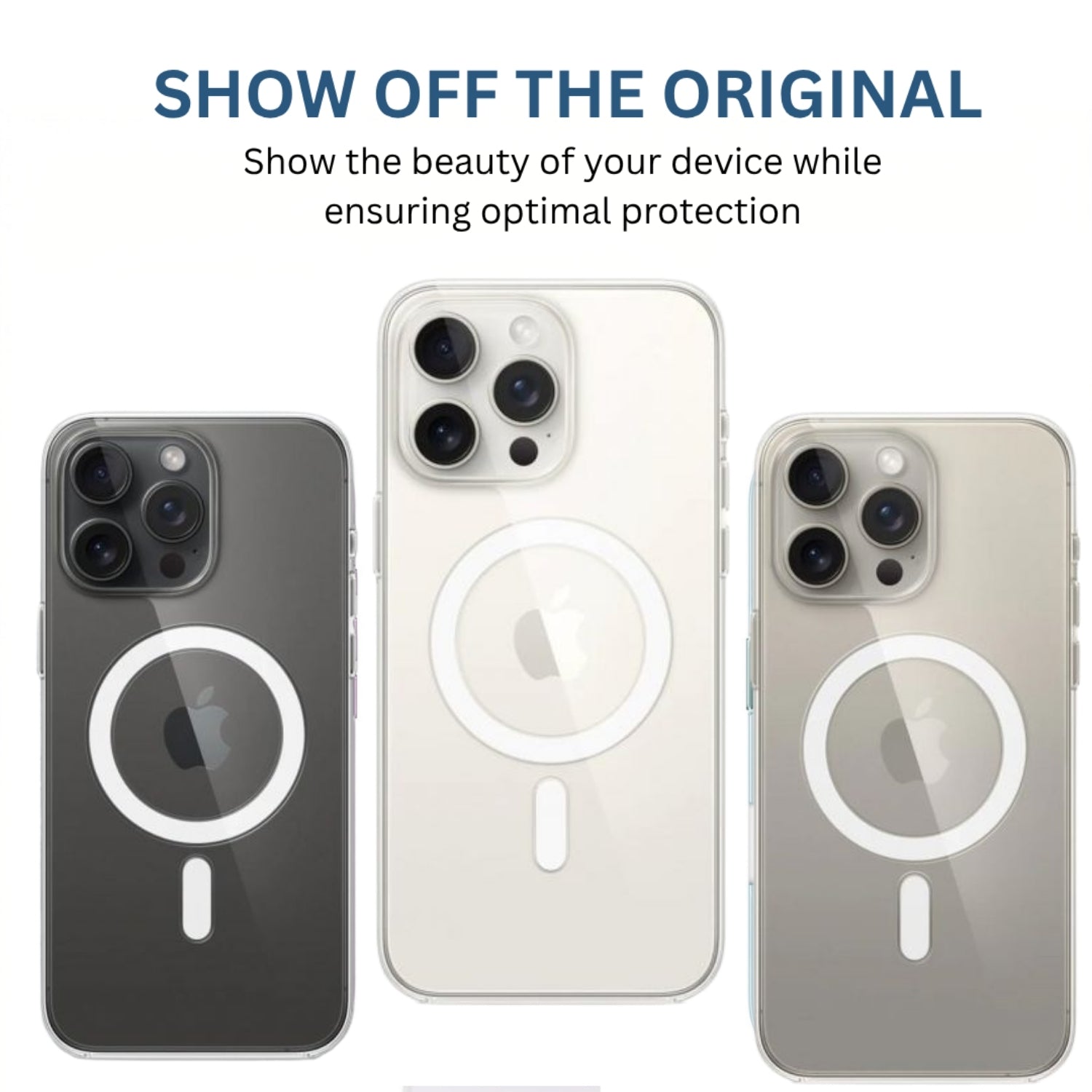 Protect your iPhone with this premium transparent MagSafe case, crafted for style, durability, and long-lasting clarity. Built with high-quality TPU and PC materials,